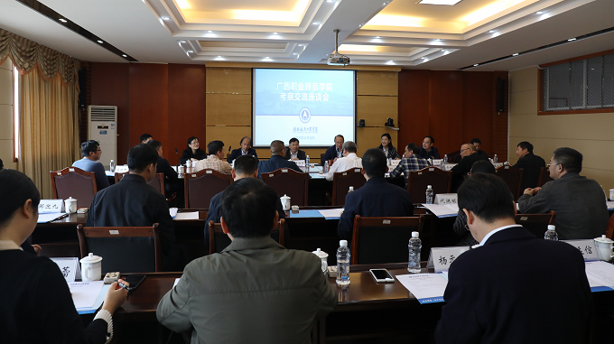 11月16日,广西职业师范学院党委书记李明辉、校长朱朝霞、副校长王萍、陈湘桂带队来校考察交流,学校党委书记李幼平、校长易忠、党委副书记刘迎春、副校长孙山林热情接待了来访客人。